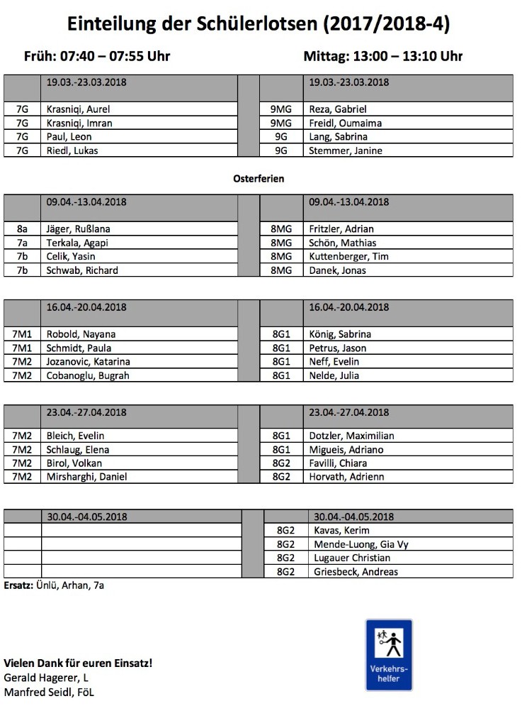 Einteilung der Schülerlotsen